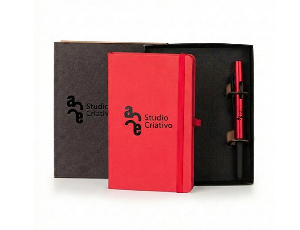 Kit Caderneta Anotações Com Caneta - Vermelha