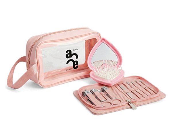 Kit Manicure: Estojo em couro sintético com 10 ferramentas completas em aço.