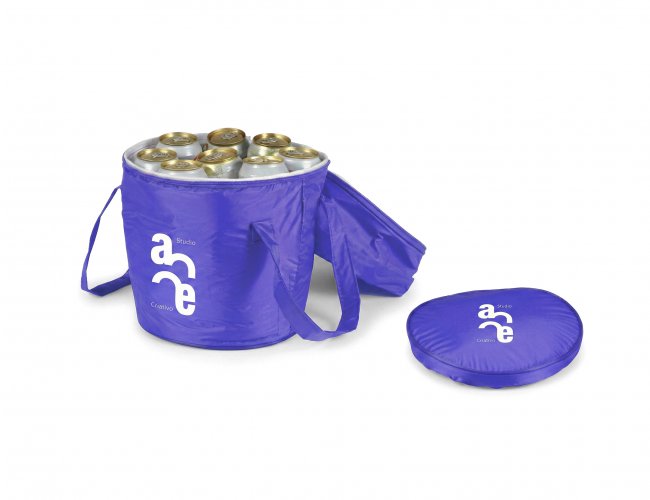 Balde Térmico Personalizado que ao ser dobrado fica em forma de um disco. * Pat Req